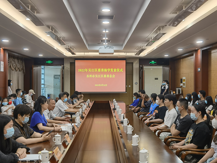 8月24日下午,2022年吴江区慈善助学金发放仪式在区会议中心举行。区慈善总会会长范建坤,区民政局局长、区慈善总会常务副会长沈春荣出席仪式,区民政局副局长、区慈善总会副会长凌芬主持发放仪式。
