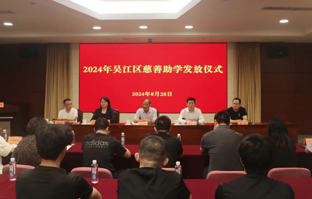 8月28日下午, 2024年吴江区慈善助学发放仪式在吴江大厦会议中心举行。区慈善总会会长范建坤,区民政局局长、区慈善总会常务副会长汪晓东,太湖新城慈善会会长解冻,震泽镇慈善会会长沈永法参加发放仪式,区民政局副局长薛美娟主持发放仪式。